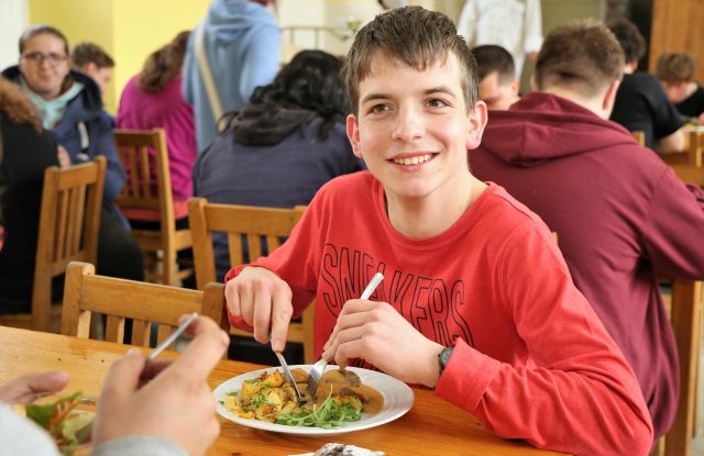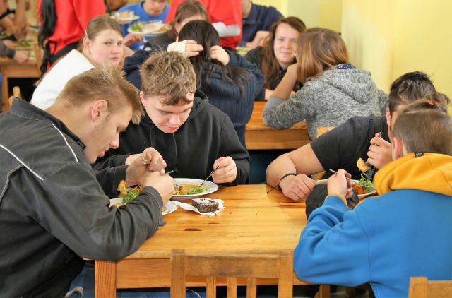 Ve spolupráci s Olomouckým krajem a především se Školní jídelnou v Kojetíně, která patří k naší republikové špičce, jsme uvařili v rámci normativu a spotřebního koše oběd pro zaměstnance a žáky školy. Zlatým hřebem menu byla vepřová líčka na zelenině se smetanou a pečenými bramborami. Hlavní chod doplnila i fazolová polévka s bylinkami, makovec s hruškami a salát s mrkví a ředkvičkou. Místo čaje se podával mošt z jablek, mrkve a zázvoru.