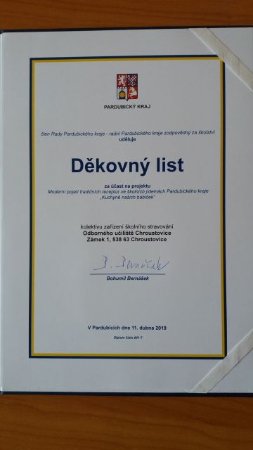 Školní jídelna při Odborném učilišti v Chroustovicích hostila třetí pokračování projektu Pardubického kraje, jehož cílem je nejen propagace školního stravování s odkazem na národní gastronomické tradice, ale i kombinace nejmodernějších technologií a trendů zdravého a chutného vaření.