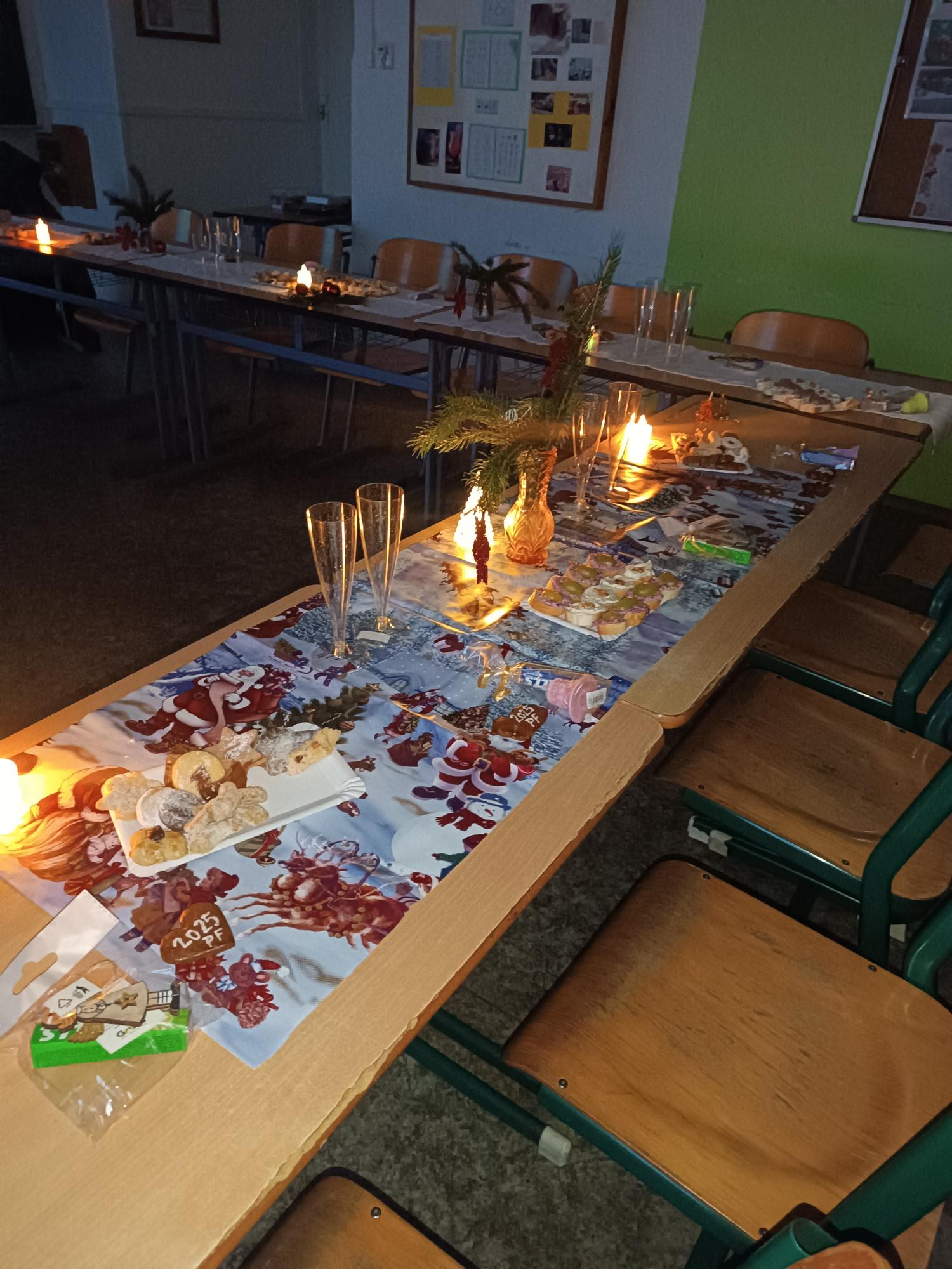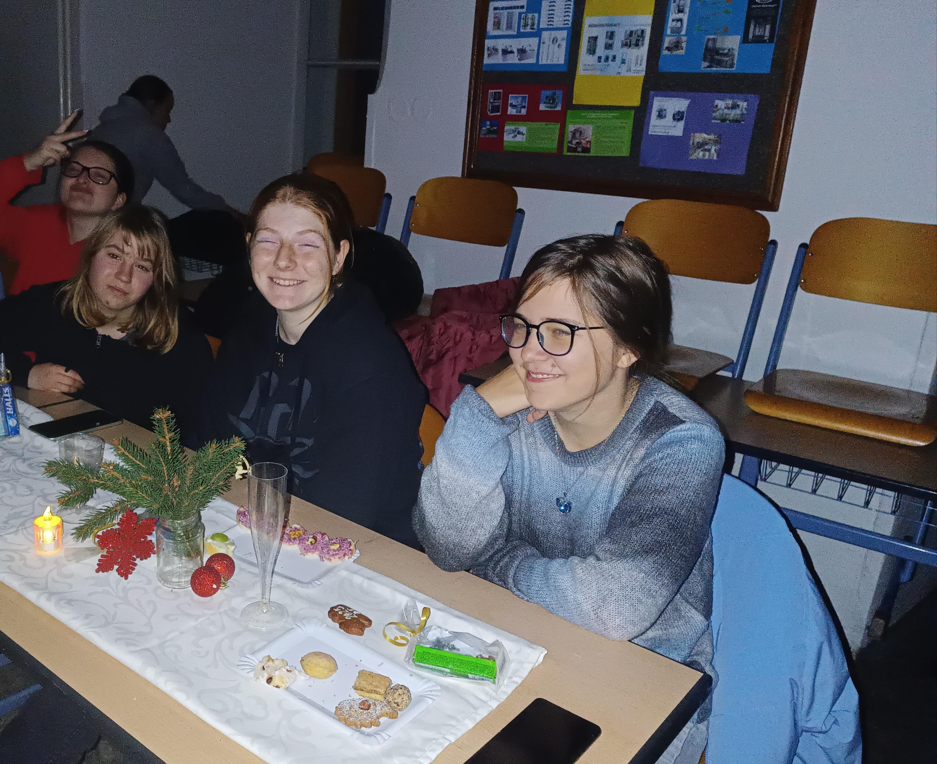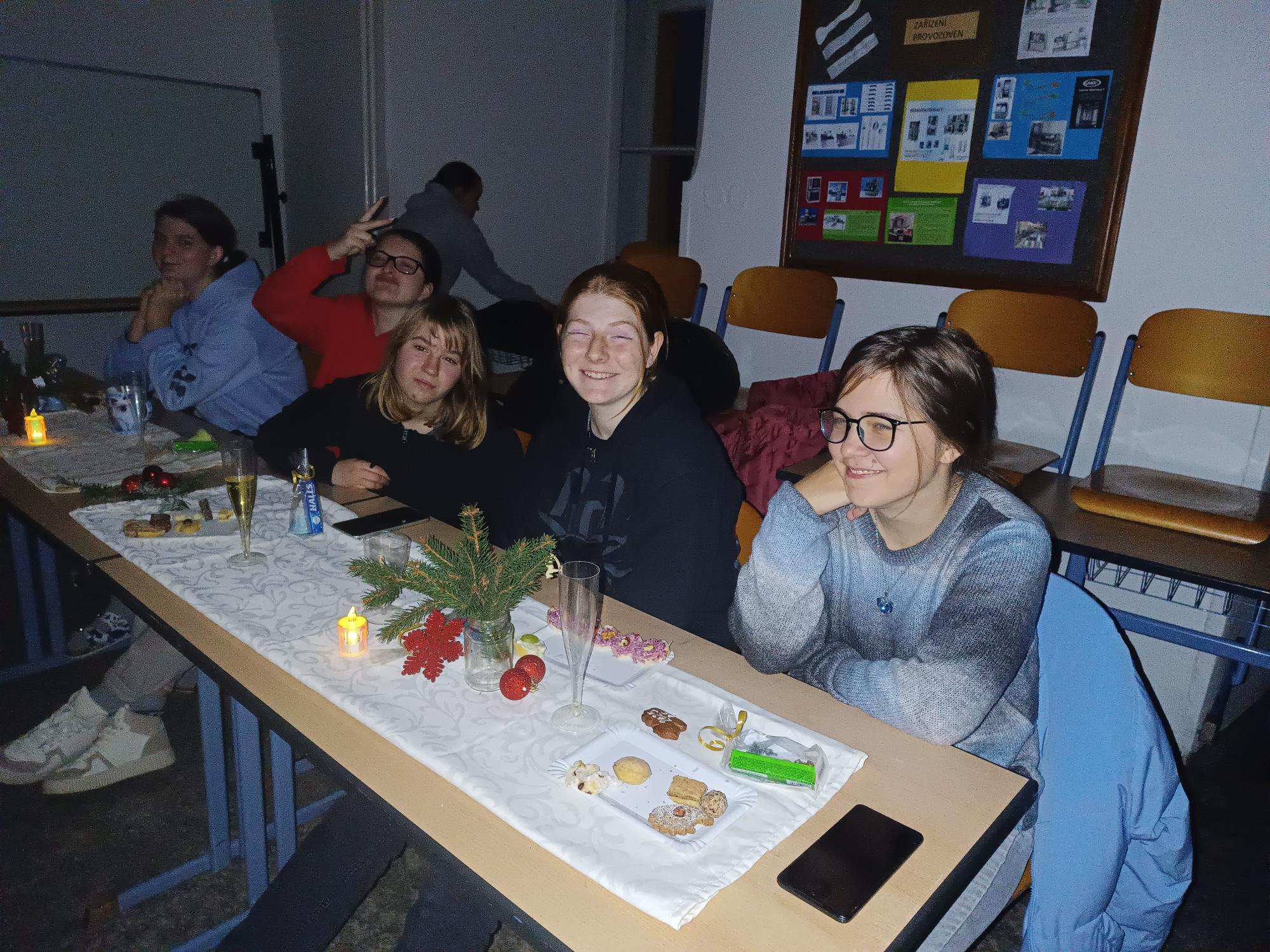 Další adventní akcí na domově mládeže bylo vánoční posezení. Na bohatě prostřených stolech nechybělo nic, co k vánoční pohodě patří. Také atmosféra zde vládla téměř rodinná. Povídali jsme si o vánočních tradicích, o tom, jak slavíme svátky ve svých domovech a nezapomněli jsme ani na zpěv vánočních koled.