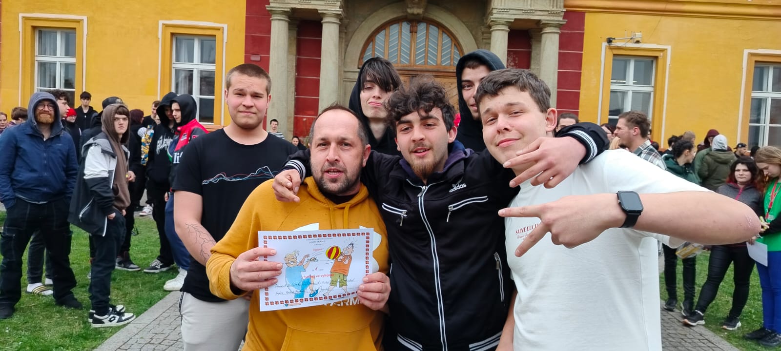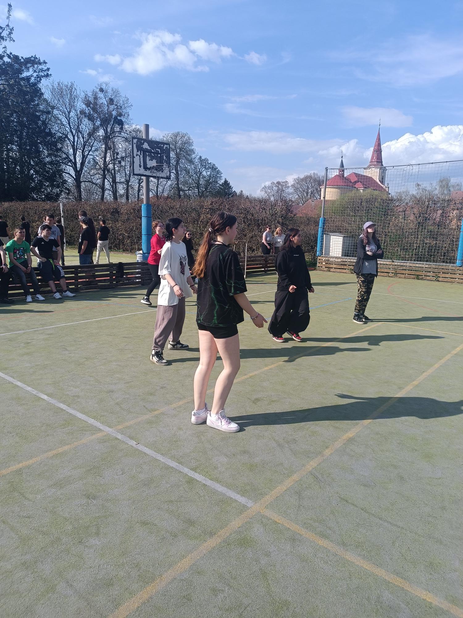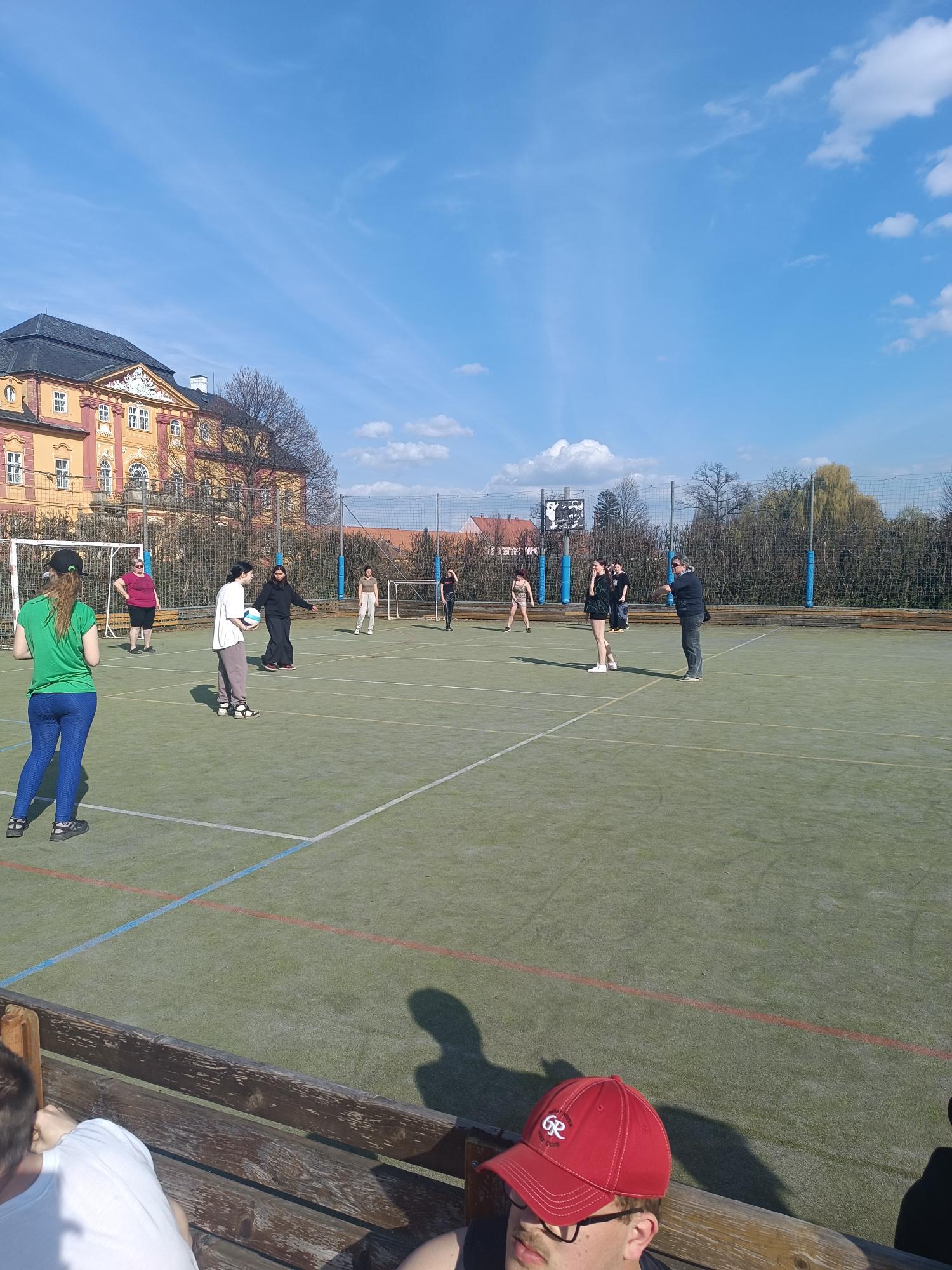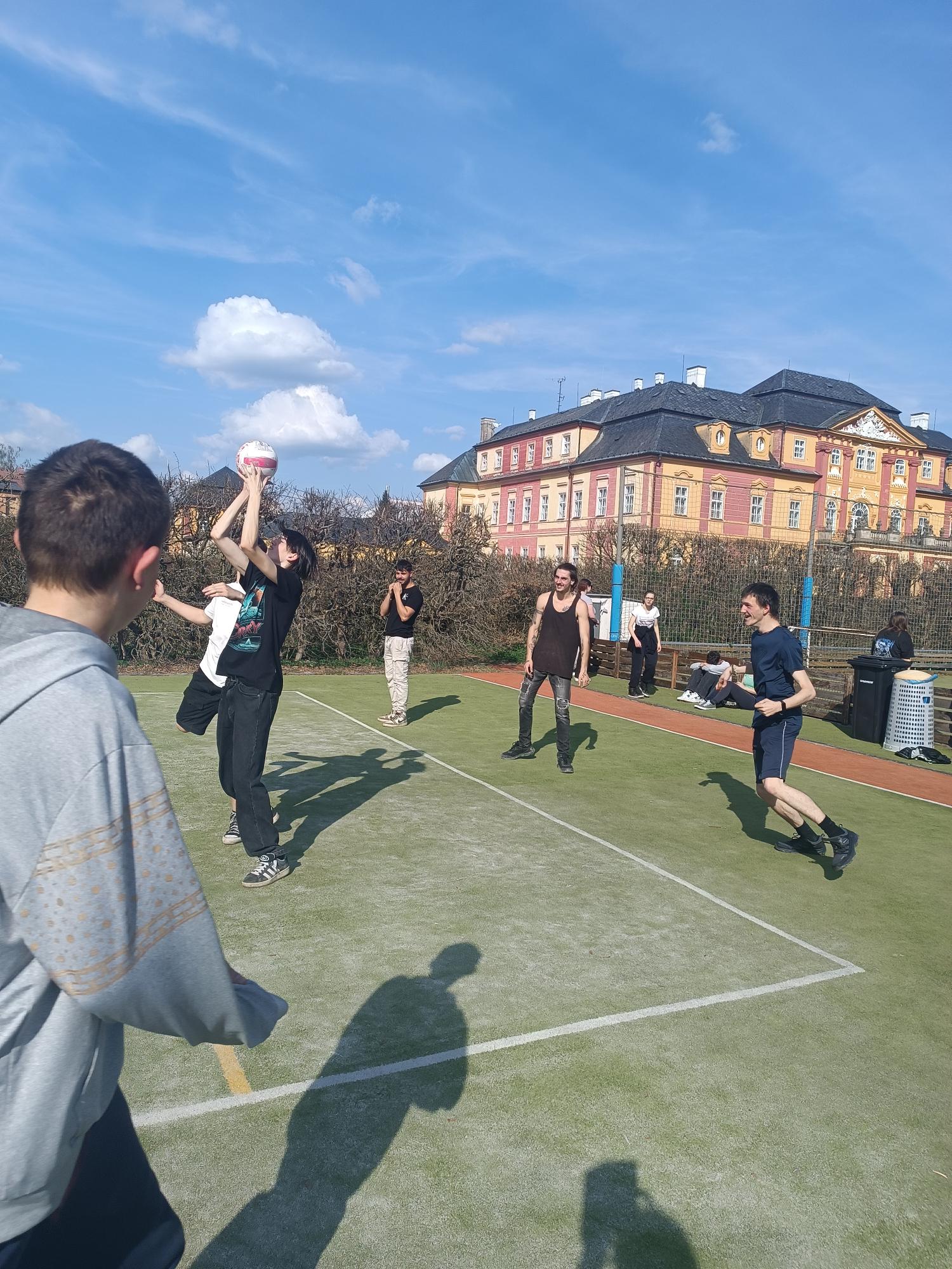 Ano, nacházíme se v sektoru sportovního vyžití již zmíněného zámeckého parku, kam se v pondělí 14.dubna, roku dvoutisícéhodvacátéhopátého vydalo změřit své síly 7 týmů z domova mládeže našeho učiliště v disciplíně vyžadující postřeh, rychlost, schopnost chytit balón, nahrát, spolupracovat a pružně reagovat na neustálé změny na soupeřově poli.