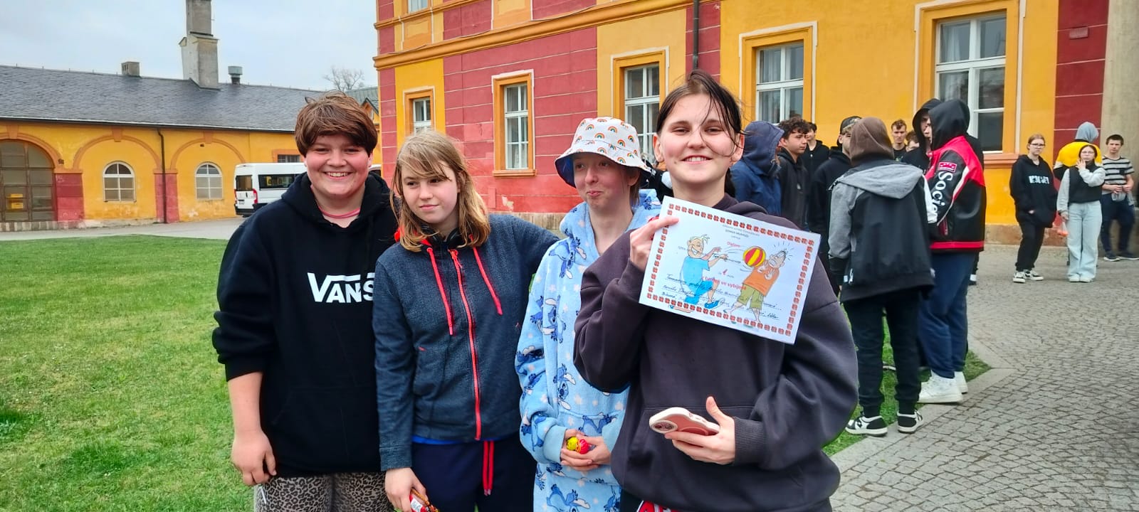 Naštěstí neceníme pouze vítězství, ale také snahu a účast, a tak se den poté, před hlavní budovou na slavnostním vyhlášení, dostaly ke svým sladkým odměnám i ostatní týmy. A to na druhých místech skupiny paní vychovatelky Wiesnerové za malý domov a skupina paní Krajánkové za druhé patro.