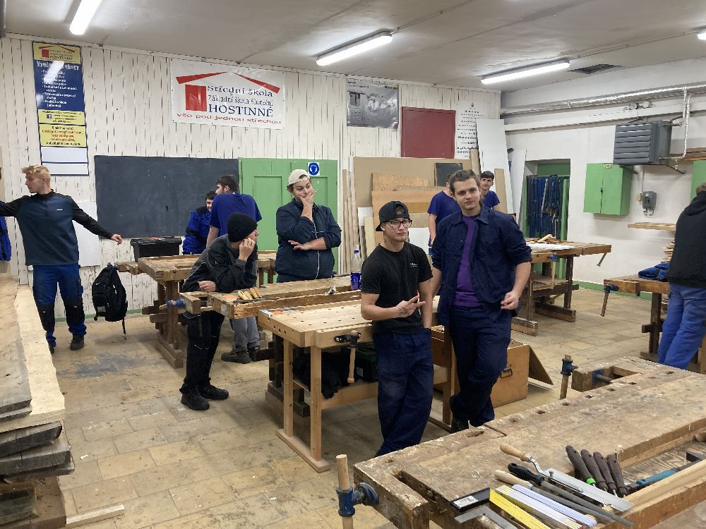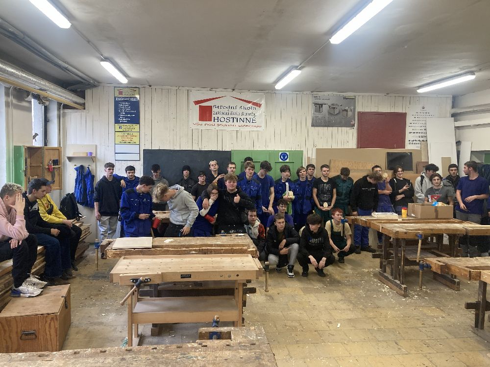Ve čtvrtek 23. 10. 2025 pořádalo odborné učiliště v Hostinném soutěž pro dřevoobory. Letošního 14 ročníku jsme se zúčastnili se dvěma soutěžními týmy ve složení Jakub Špalek, Daniel Harvan a Jaroslav Votava a Dominik Koutenský. Kluci se svého úkolu zhostili se ctí a vědomostní test i výrobu výrobku zvládli skvěle. Ve velké konkurenci 18 soutěžních týmů se Jakub s Danielem umístili na krásném čtvrtém místě.
