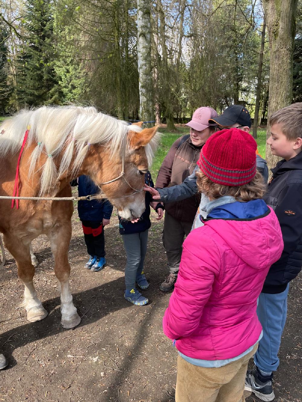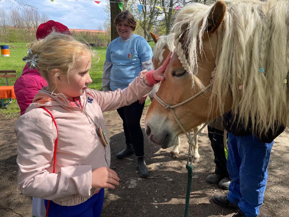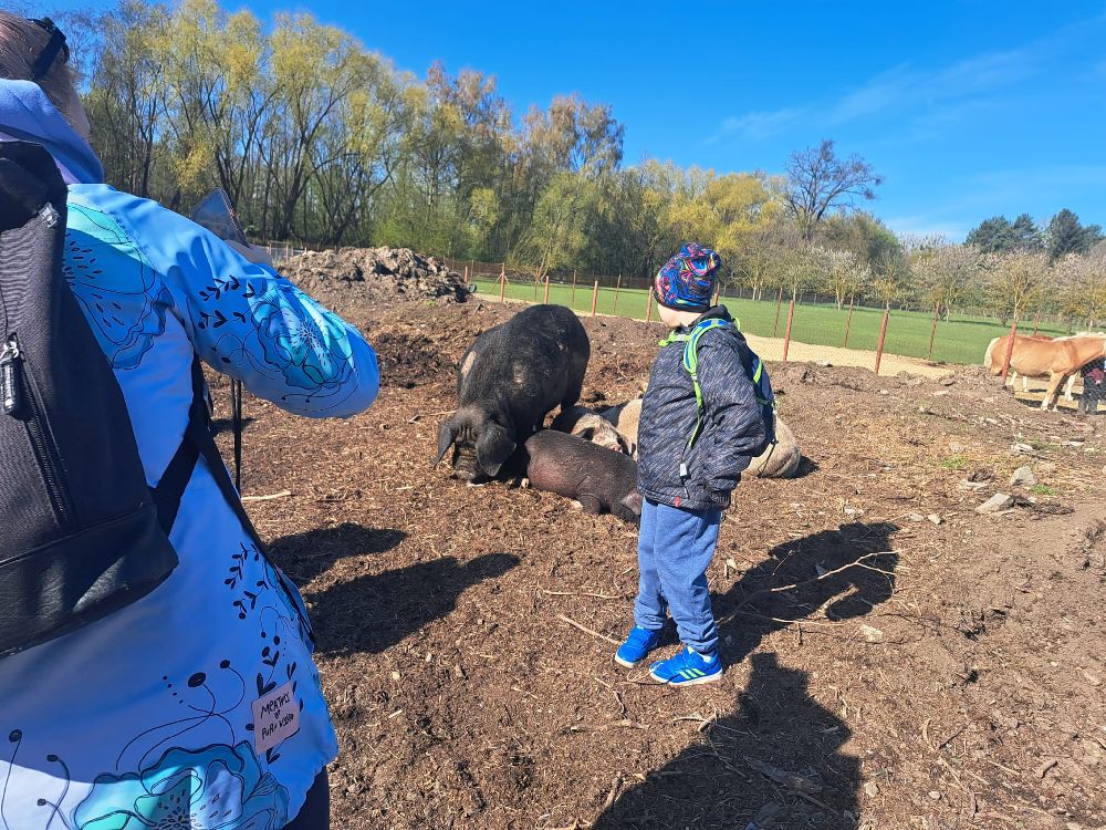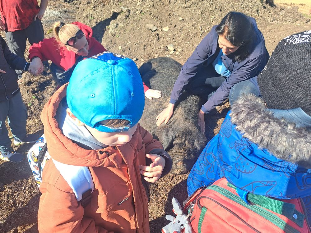 Celý program byl pečlivě připraven tak, aby si každý účastník mohl najít svou vlastní cestu ke koním a zároveň si odnesl silný pozitivní zážitek. Hlavními „terapeuty“ byli koně Ariela, Cindy a roční kobylka Chloe. Mimo jiné jsme společně s dětmi procházeli školním statkem. Je jaro a k vidění tedy byla mláďátka našich ovcí, koz a prasat. Velký úspěch měl i náš kanec Karel (řečený čtvrtý) Je tak ošklivý, až je krásný a zaručený mazel…
