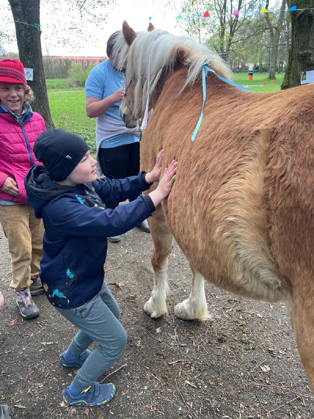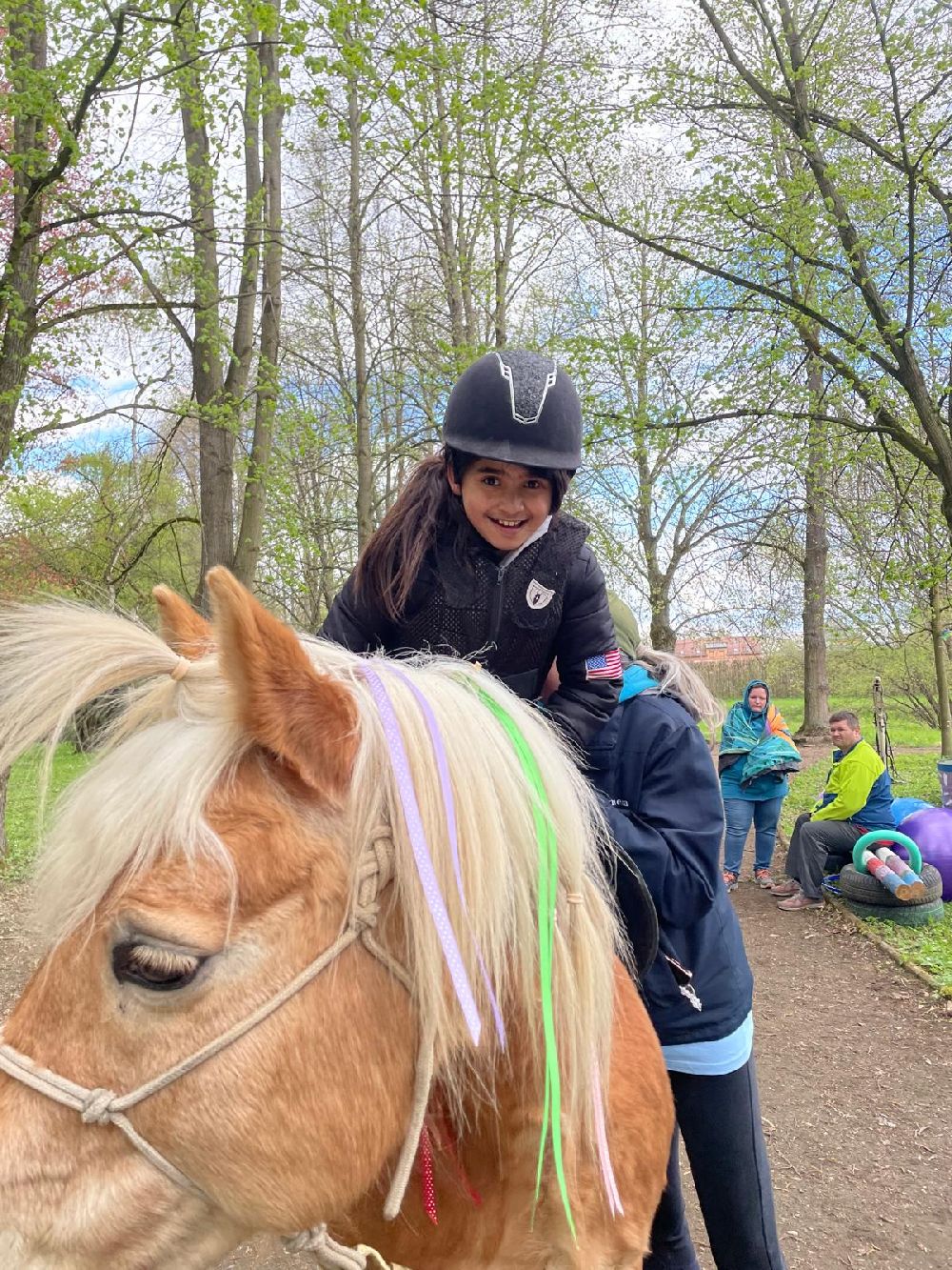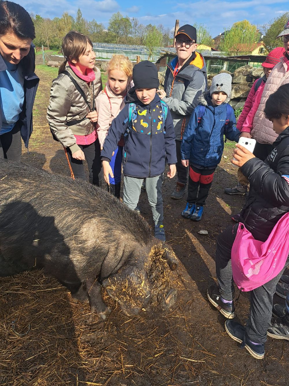 Celý program byl pečlivě připraven tak, aby si každý účastník mohl najít svou vlastní cestu ke koním a zároveň si odnesl silný pozitivní zážitek. Hlavními „terapeuty“ byli koně Ariela, Cindy a roční kobylka Chloe. Mimo jiné jsme společně s dětmi procházeli školním statkem. Je jaro a k vidění tedy byla mláďátka našich ovcí, koz a prasat. Velký úspěch měl i náš kanec Karel (řečený čtvrtý) Je tak ošklivý, až je krásný a zaručený mazel…